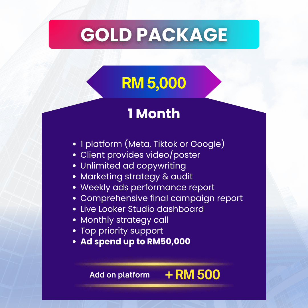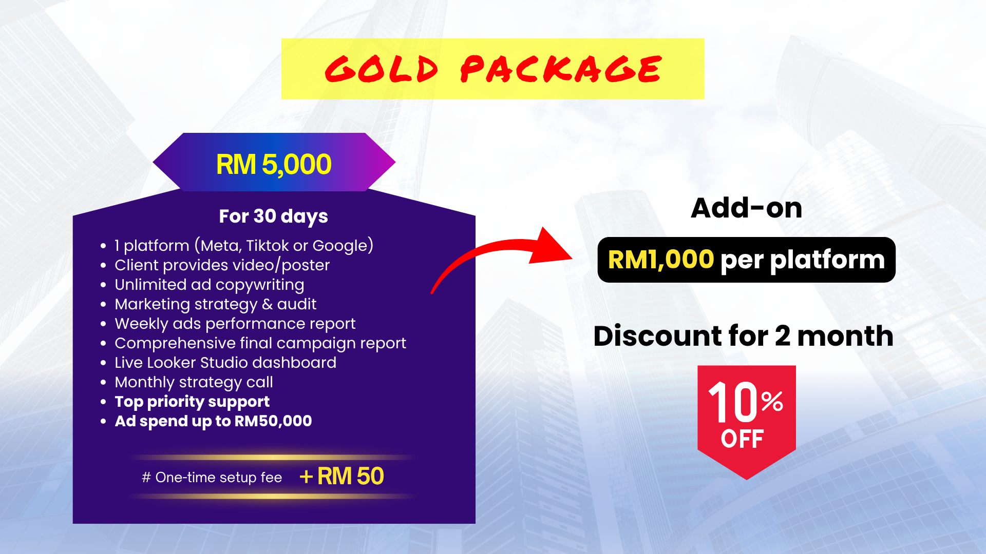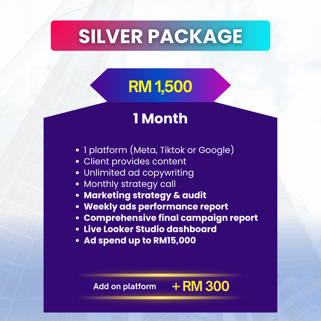 Bergantung pada pakej, sehingga RM15,000/bulan untuk Silver.