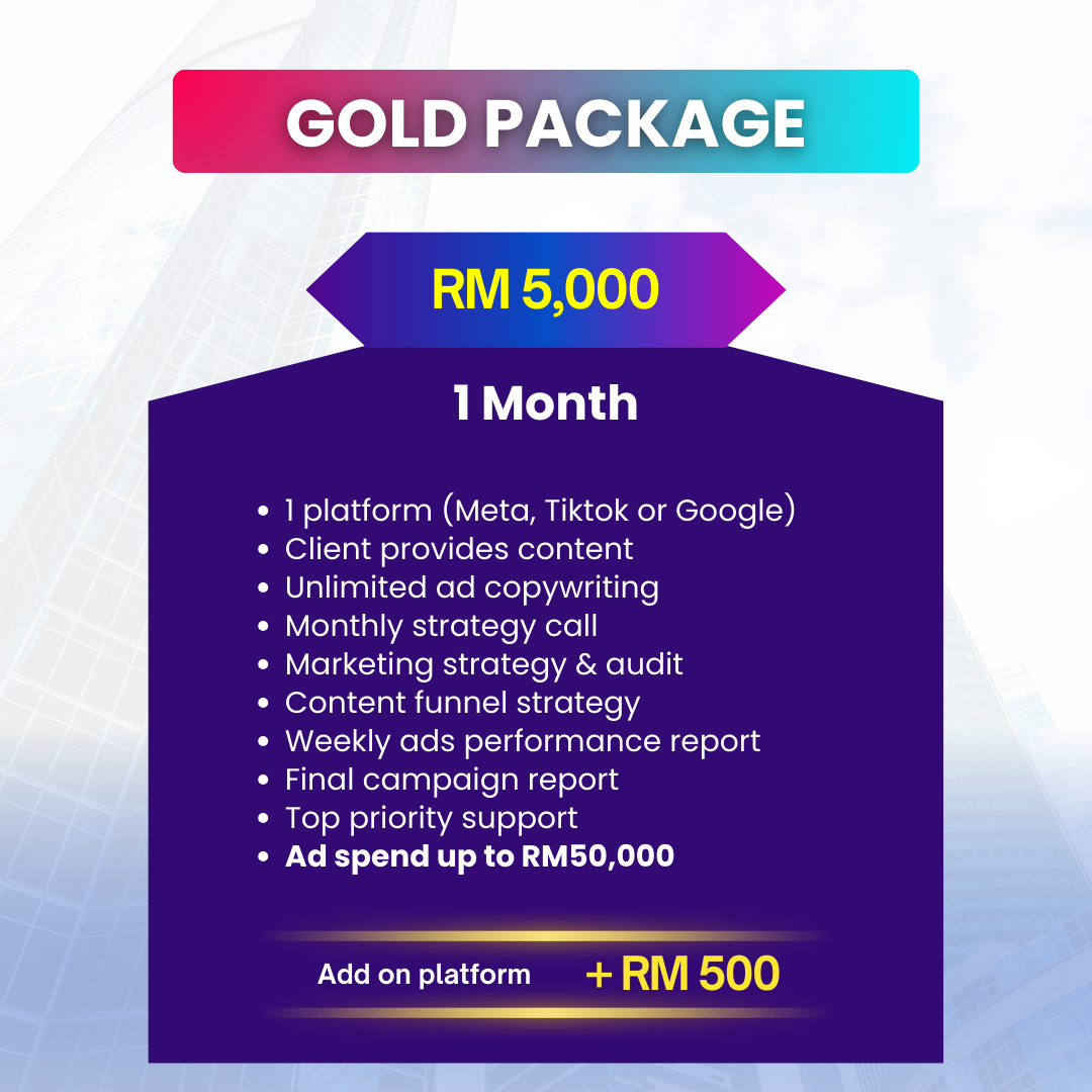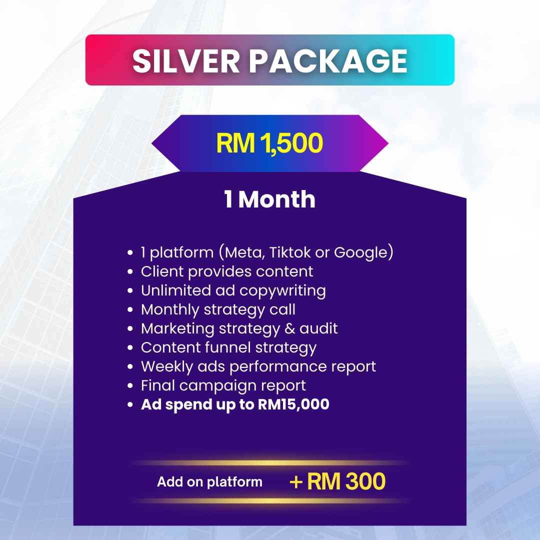 Bergantung pada pakej, sehingga RM15,000/bulan untuk Silver.